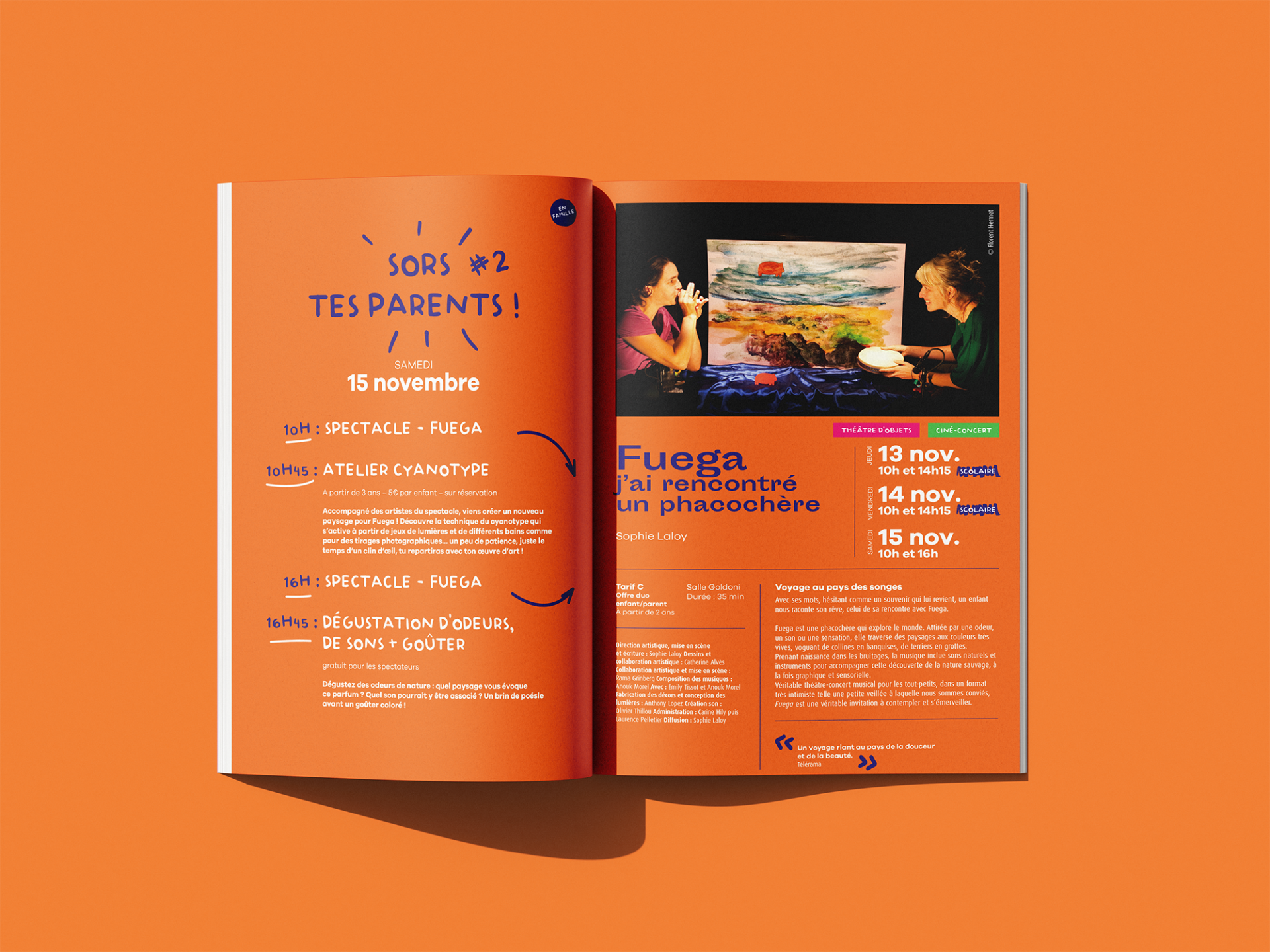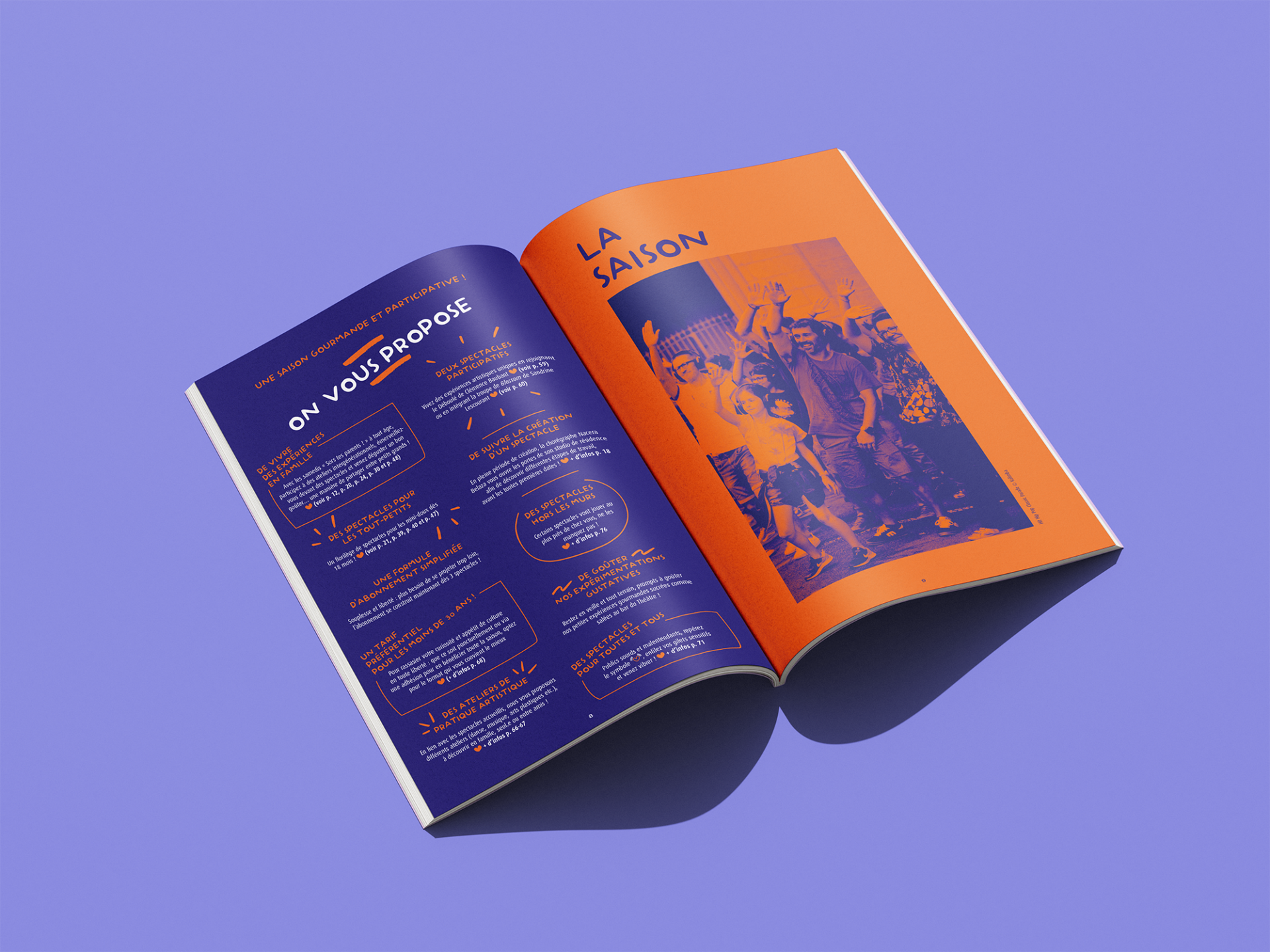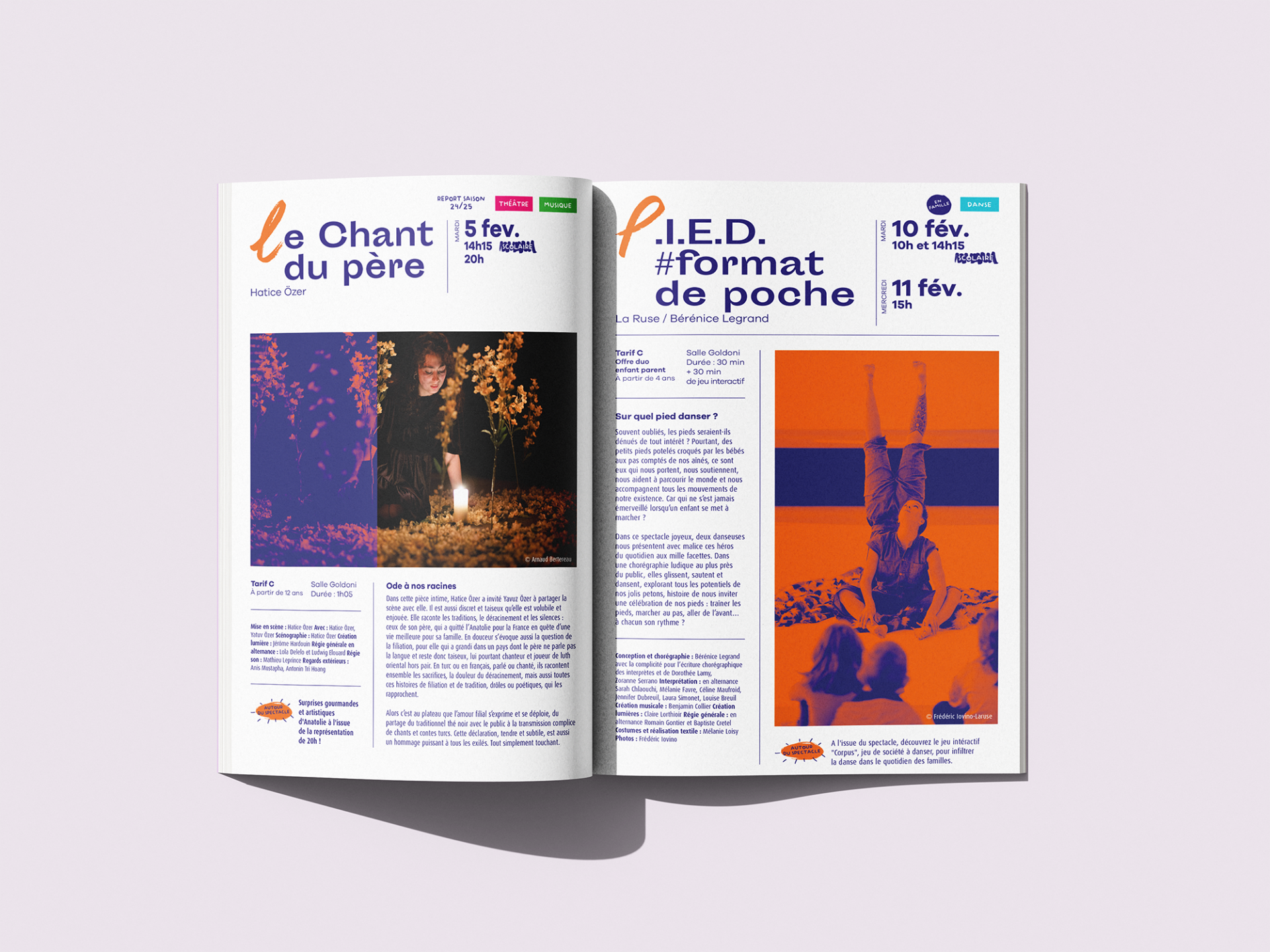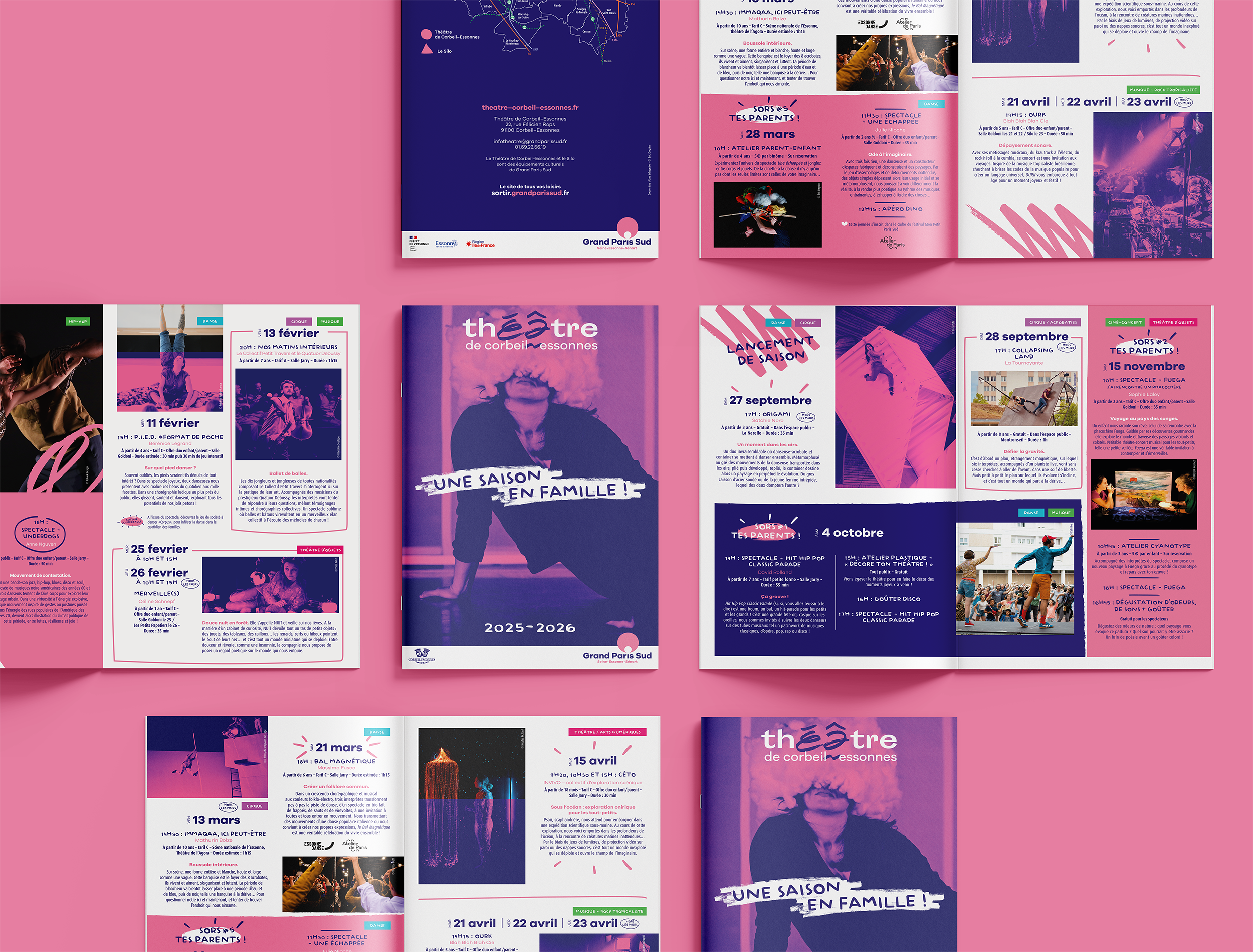 L’un des premiers travaux effectué dans ce cadre est la réalisation du programme de saison 2025-2026 du Théâtre de Corbeil-Essonne, à partir du principe de maquette imaginé par le studio graphique de GPS.